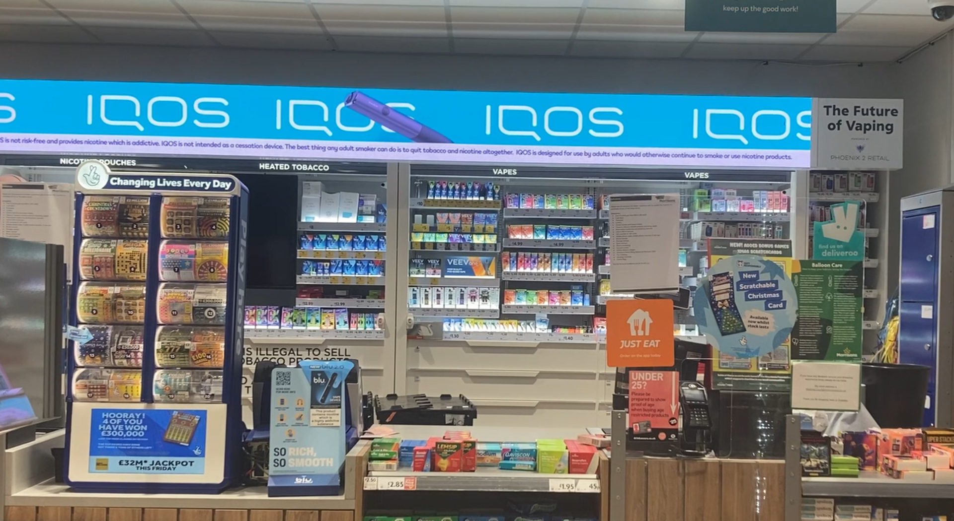 Despite Philip Morris agreeing to “suspend” advertising for IQOS in 2018, both they and Japan Tobacco International have resumed marketing their heated tobacco products in shops.