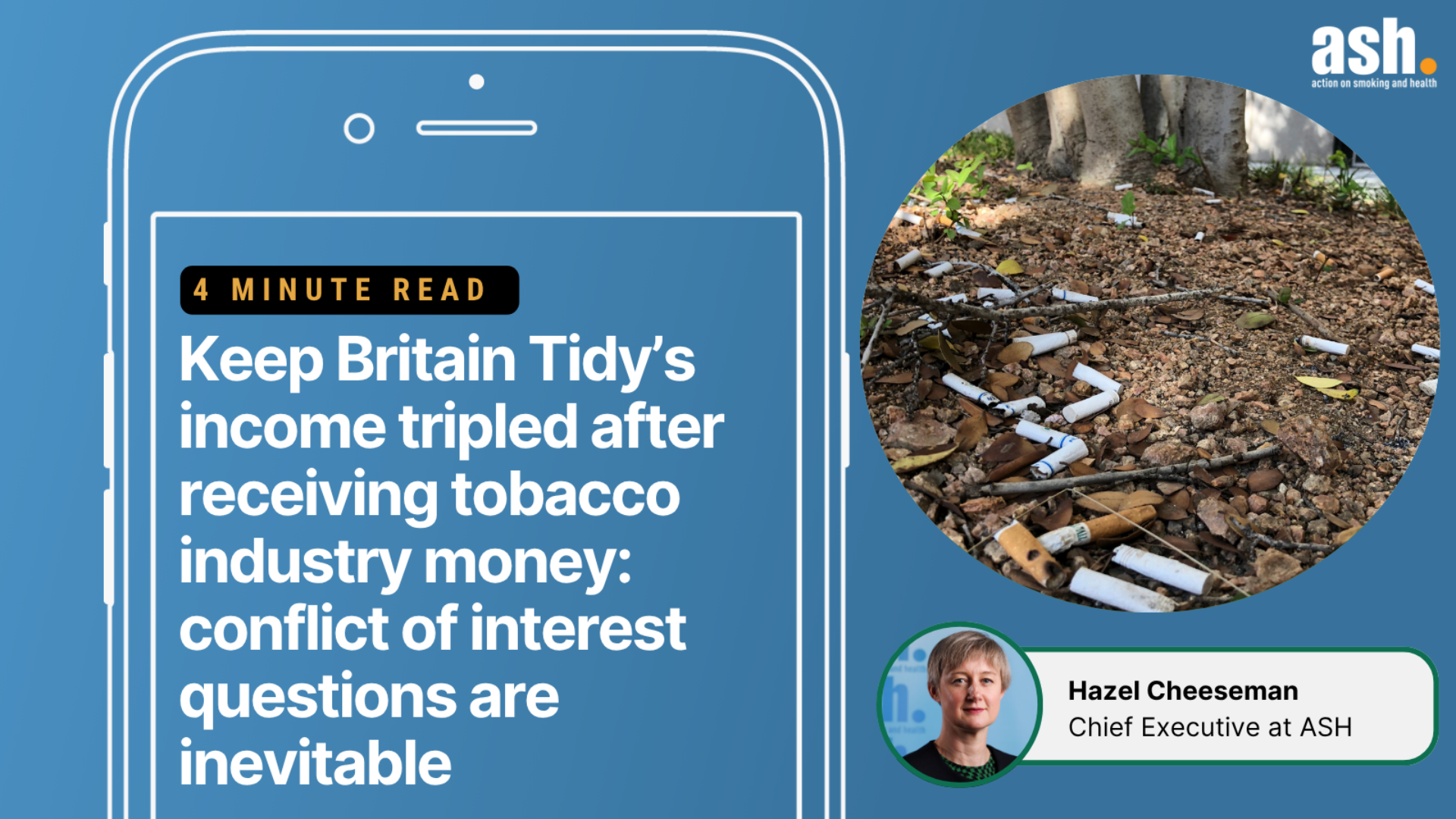 In this blog, ASH CEO Hazel Cheeseman explains why Keep Britain Tidy’s acceptance of tobacco industry funding is problematic and risks putting local authorities in breach of Article 5.3 of the WHO Framework Convention on Tobacco Control.