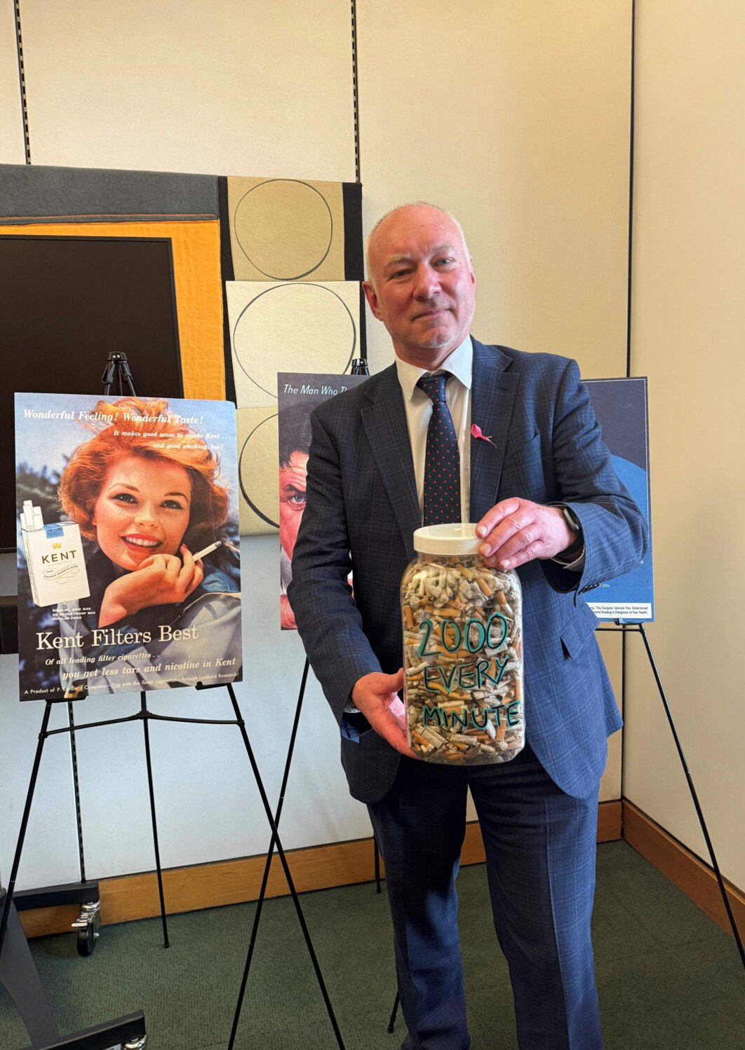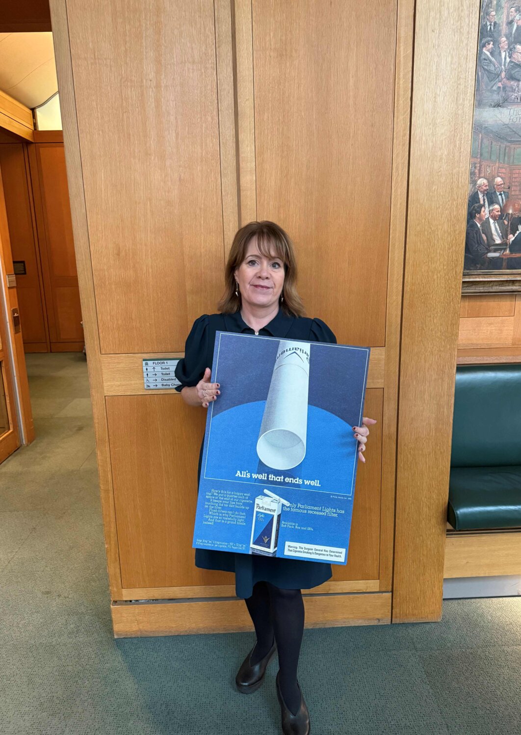 Parliamentarians then heard from Dr Katie East, from Kings College London, who addressed the health harms that have arisen from the introduction of cigarette filters. Dr East told attendees that a new paper, that had been published that morning highlighting data from Action on Smoking and Health, shows that only 25% of the public can correctly identify that filters don’t provide any health protection to smokers. She explained that cigarette filters encourage smokers to inhale more deeply, causing further harm and that some filters have been directly linked to marked increased cases of lung adenocarcinoma.