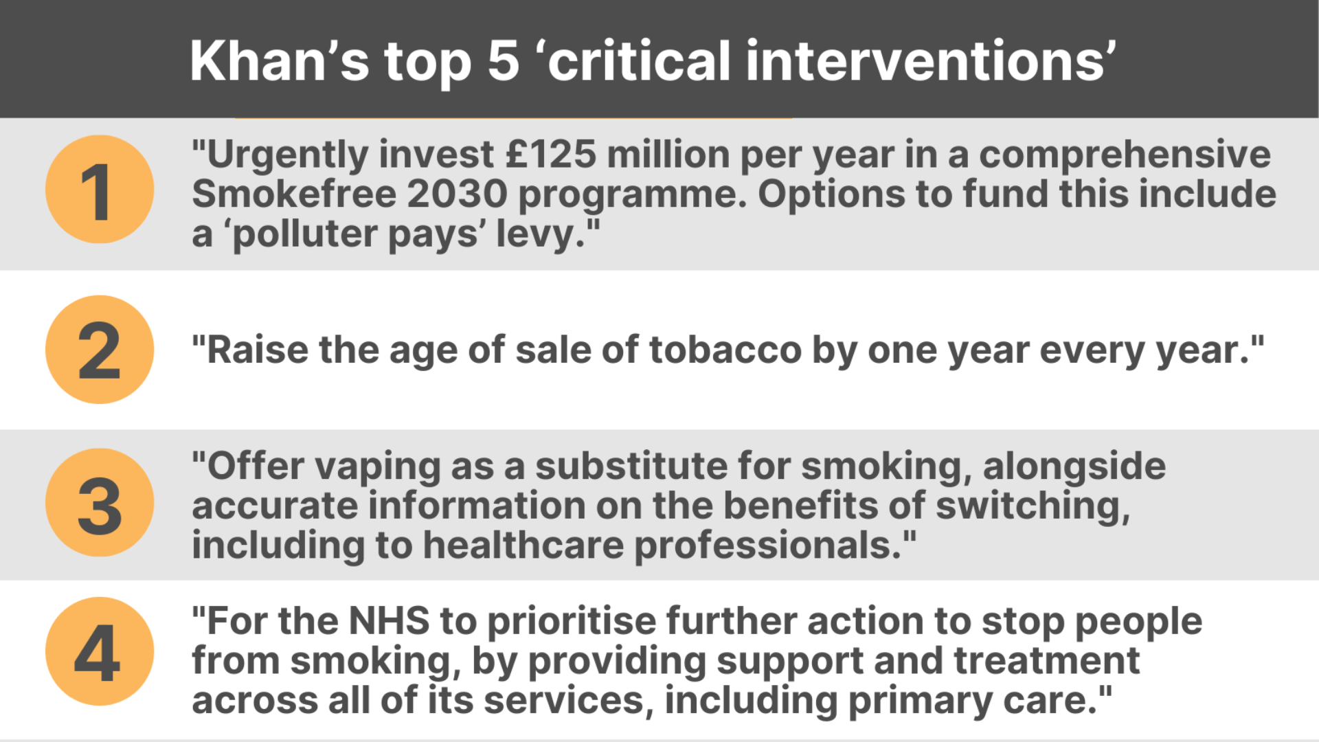 “The Javed Khan review has the scale and ambition needed to end the harm caused by tobacco once and for all. As a former smoker and cancer survivor, I’m one of the lucky ones. Smoking makes life a misery for many thousands of people every year who suffer from debilitating diseases before it kills them. It’s shocking that tobacco companies are making massive profits from an addiction that robs people of their lives and their health. I believe they should be made to pay for the damage they do.”