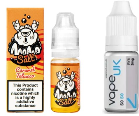 See example of caramel tobacco flavoured e-liquids: one fully branded, the other with an alpha-numerical descriptor. Available online today from: