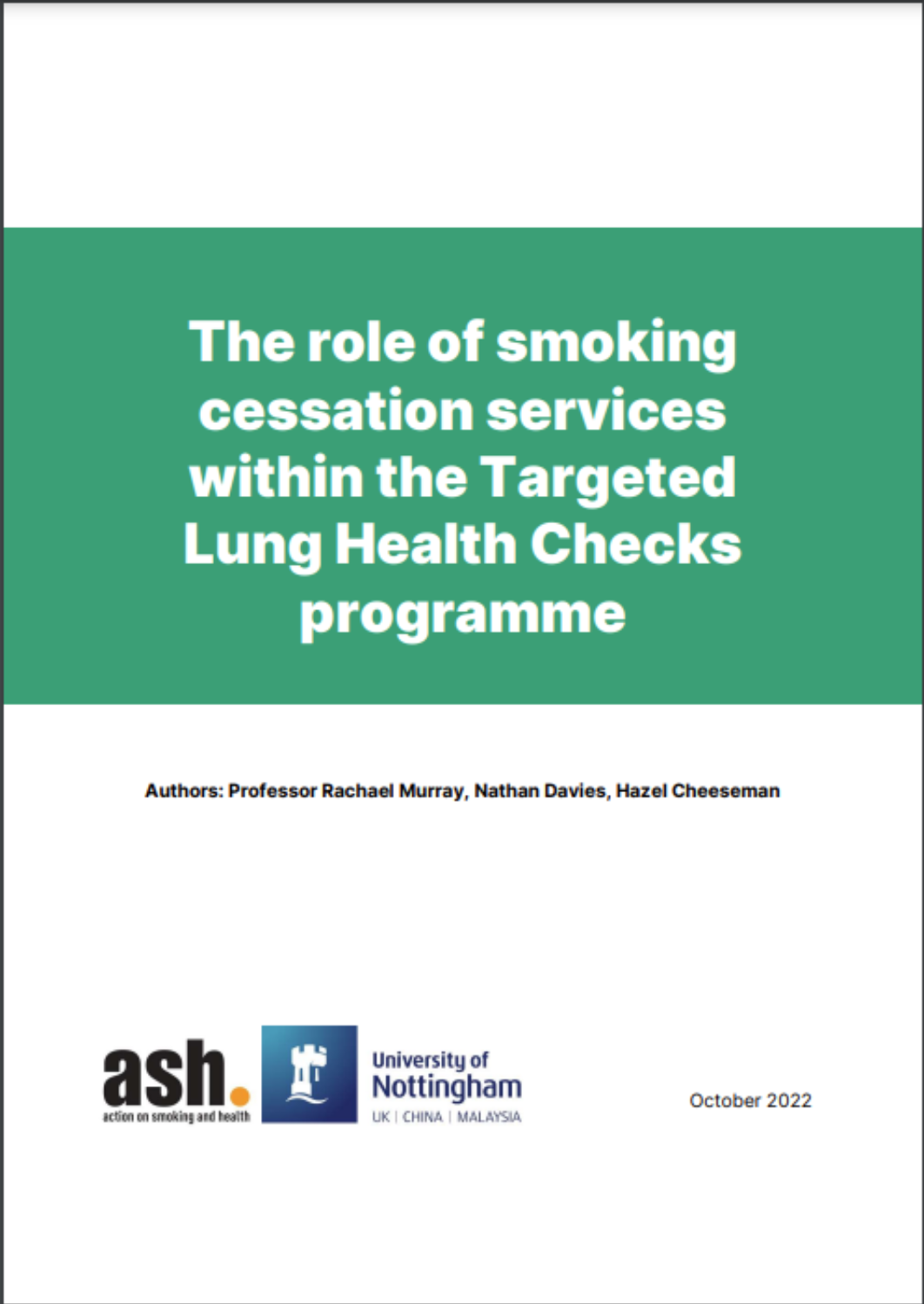 Review of evidence on embedding smoking cessation support in lung health checks. Report commissioned by ASH from University of Nottingham.