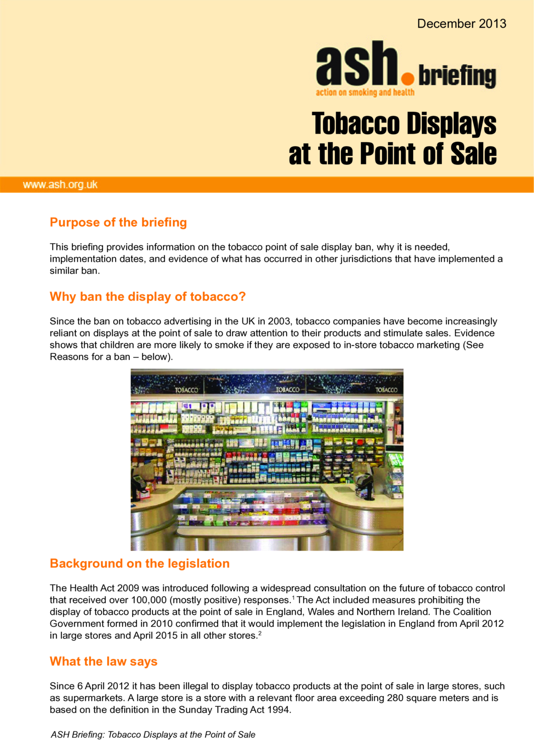 Research shows that Point of Sale (PoS) display has a direct impact on young people’s smoking. In 2006, almost half (46%) of UK teenagers were aware of tobacco display at PoS and those professing an intention to smoke were more likely to recall brands that they had seen at the point of sale.
